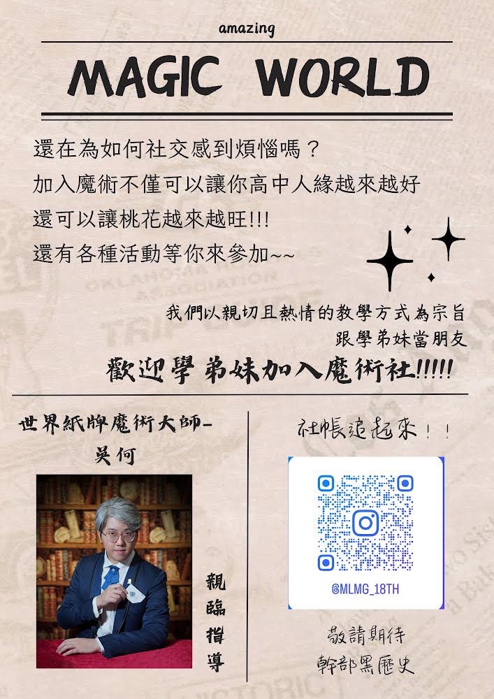 要加入魔術社不需要深厚的底子,只需要有興趣的你